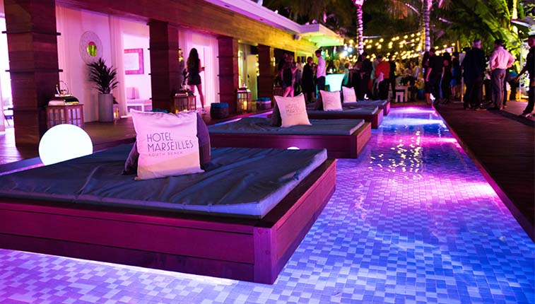 Marseilles Hotel in South Beach recently unveiled its long-awaited poolscape on with a backyard-themed bash featuring live entertainment by DJ Natty Rico and Maltilda Lindell, passed bites, tropical cocktails, and life size games (e.g. Jenga, Connect Four, Twister, Ping Pong).